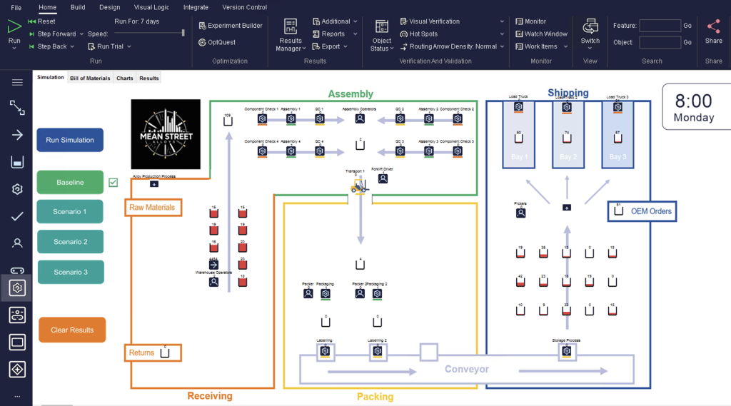 Дискретно-событийное моделирование — это метод, позволяющий воспроизводить работу реальных бизнес-процессов, анализировать их эффективность и оценивать влияние изменений без риска для реального производства. С помощью Simul8 можно смоделировать существующие или проектируемые процессы любого масштаба, протестировать различные сценарии «что, если» и увидеть, как система поведёт себя в условиях изменчивости и случайности. Это особенно важно при планировании производственных мощностей, оптимизации логистики или повышении эффективности обслуживания.