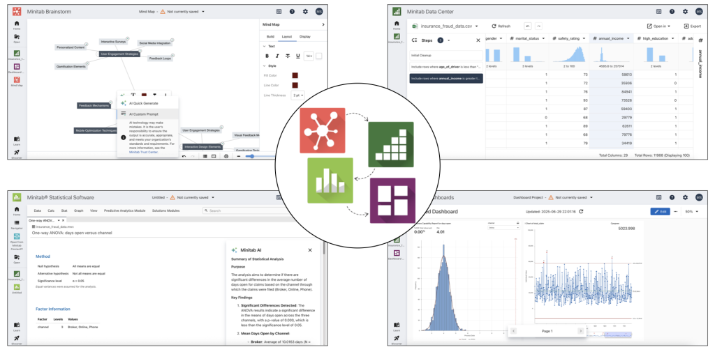 - Minitab Dashboards — для интерактивной визуализации и мониторинга показателей.